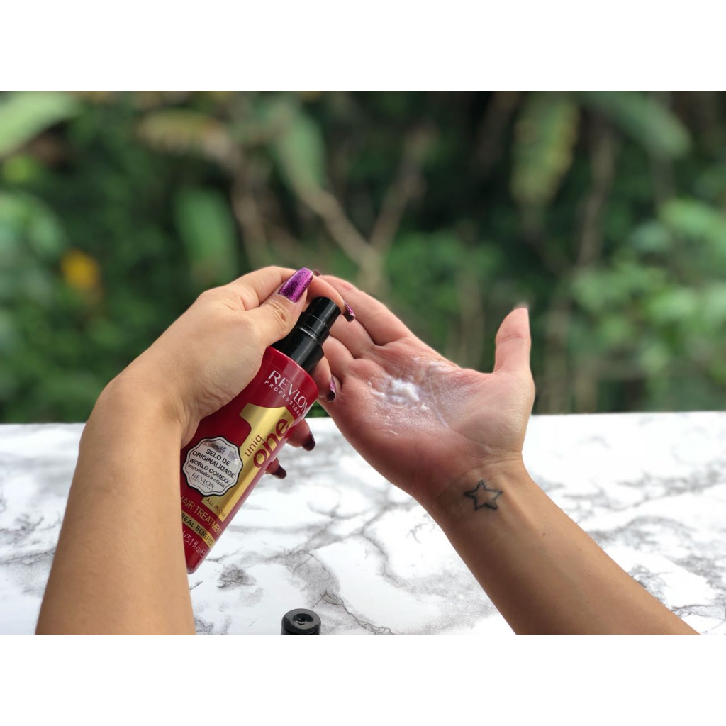 O Uniq One, da Revlon Professional, une 10 benefícios de tratamento e finalização em um só produto: 1. Repara os fios ressecados e danificados: possui agentes hidratantes e de condicionamento que melhoram a textura e a maleabilidade dos fios. 2. Controla o frizz: com o tempo seco ou úmido, protege das agressões ambientais e evita que o cabelo arrepie. 3. Protege do calor do secador e da chapinha: forma uma película ao redor da fibra capilar, protegendo-a das altas temperaturas. 4. Suaviza e deixa um toque acetinado: possui agentes condicionantes poderosos, amaciando e controlando. 5. Protege do sol e mantém a cor: com filtros UVA e UVB, extremamente leves, protege sem deixar o cabelo pesado. Evita a oxidação causada pelo sol que faz cor desbotar. 6. Facilita a escovação e o uso da prancha: com o cabelo mais suave e macio, ele facilita o deslizar a prancha e escovar. 7. Desembaraça: deixa os fios soltos e desembaraçados. 8. Mantém o penteado por mais tempo. 9. Previne as pontas duplas. 10. Controla o volume natural dos cabelos.
