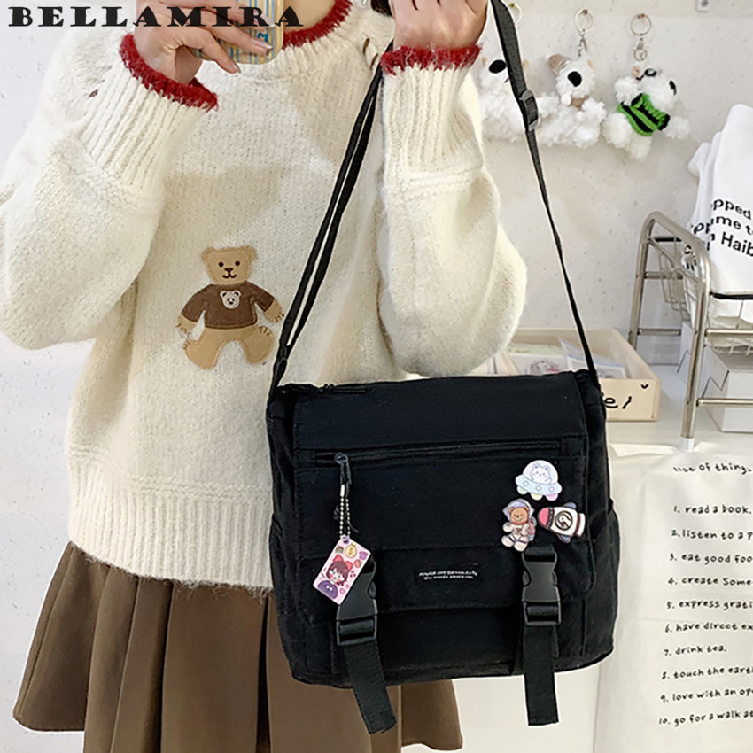 Descrição do produto Tamanho: 32 x 14 x 21 (Largura x Profundidade x Altura cm.) - Feito em tela. - Conveniente e portátil - Alças de ombro ajustáveis para uma experiência de uso mais confortável. - Estilo: Saco de Tote - Elementos populares: decoração do cinto - Estilo: Japonês e Coreano - Método de fechamento: zíper - Idade: Juventude (18-25 anos)