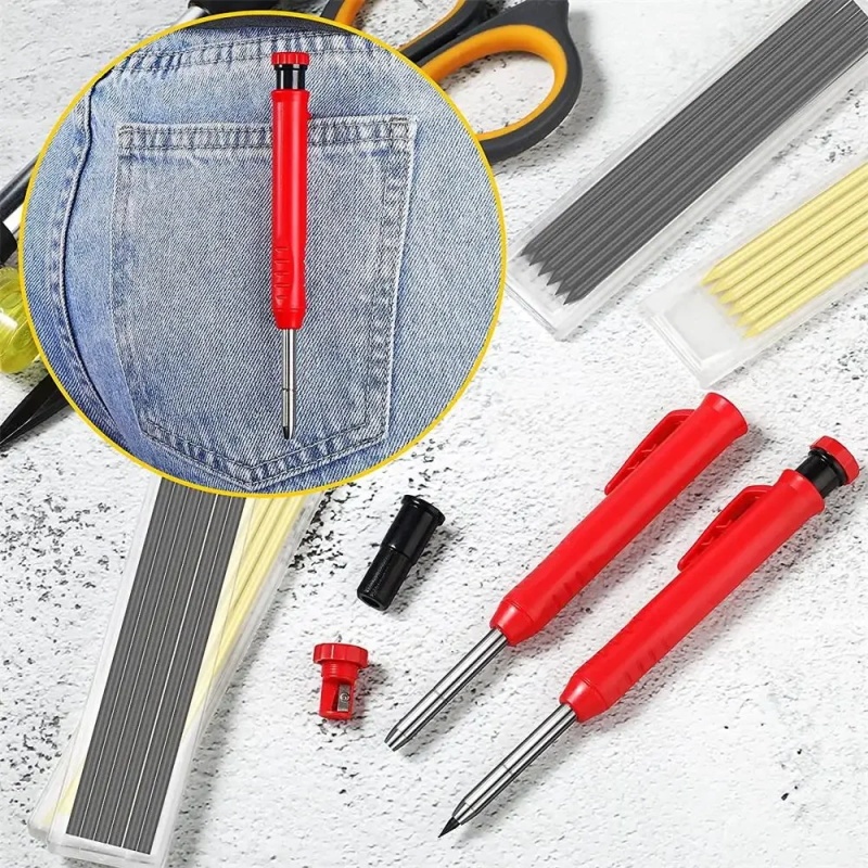 Universal Lápis De Carpinteiro Maciço Com Chumbo E Afiador Embutido Mecânico 3 Cores Refil De Construção Ferramentas De