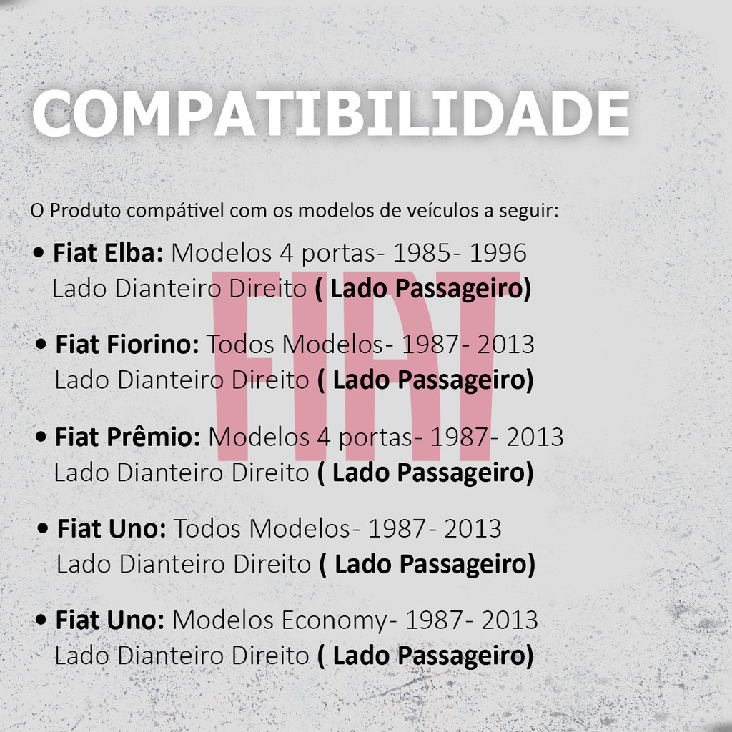Máquina de vidro elétrica Porta Dianteira Esquerda ( Motorista ) Motor Mabuchi Fiat Elba - 4 PORTAS - 1985 1986 1987 1988 1989 1990 1991 1992 1993 1993 1994 1995 1996 / Fiorino - 1987 1988 1989 1990 1991 1992 1993 1994 1995 1996 1997 1998 1999 2000 2001 2002 2003 2004 2005 2006 2007 2008 2009 2010 2011 2012 2013 / Prêmio - 1984 1985 1986 1987 1988 1989 1990 1991 1992 1993 1994 1995 / Uno - 1984 185 1986 1987 1988 1989 1990 1991 1992 1993 1994 1995 1996 1997 1998 1999 2000 2001 2002 2003 2004 2005 2006 2007 2008 2009 2010 / Uno Economy - 2008 2009 2010 2011 2012 2013 Leia com ATENÇÃO todas as informações do anúncio e compre somente na certeza. Verifique o modelo, ano, ou qualquer dúvida nos contate no campo de perguntas antes de finalizar a compra. Produto 1ª Linha (NÃO É ORIGINAL). Caracteristicas: • Número de Portas do Veículo: 4 portas. • Acionamento Elétrico. • Encaixe do motor: MABUCHI (8 dentes). • Usa Motor de lado Invertido. • Estrutura Reforçada. • Funcionamento Suave e Silencioso. • Aplicação dianteira. • Lado Esquerdo. • Encaixe perfeito semelhante ao da peça original. • Ideal para reposição de Peças. • Produto conforme a disponibilidade no estoque pode ser: Zinni & Guell / ASAP / GC. Ficha Técnica: • Modelo R-1431E SM. • Material Aço. Compatibilidade: • Fiat Elba 1985 - 1996 ( Modelo de 4 portas ). • Fiat Fiorino 1987 - 2013. • Fiat Prêmio 1984 - 1995 ( Modelo de 4 portas ). • Fiat Uno 1984 - 2010 ( Modelo de 4 portas ). • Fiat Uno economy 2008 - 2013 ( Modelo de 4 portas ). Conteúdo da embalagem: • 01 Máquina de vidro elétrica Porta Dianteira Esquerda ( Motorista ). OBS: NÃO ACOMPANHA MOTOR Medidas: • Altura da embalagem: 9 cm. • Largura da embalagem: 31 cm. • Profundidade da embalagem: 54 cm. • Peso: 0,690 kg. GARANTIA: • Garantia de 3 meses após a compra. Importante: • Recomendamos que a instalação do produto seja feita por um profissional especializado e não nos responsabilizamos pelo mau uso do produto.