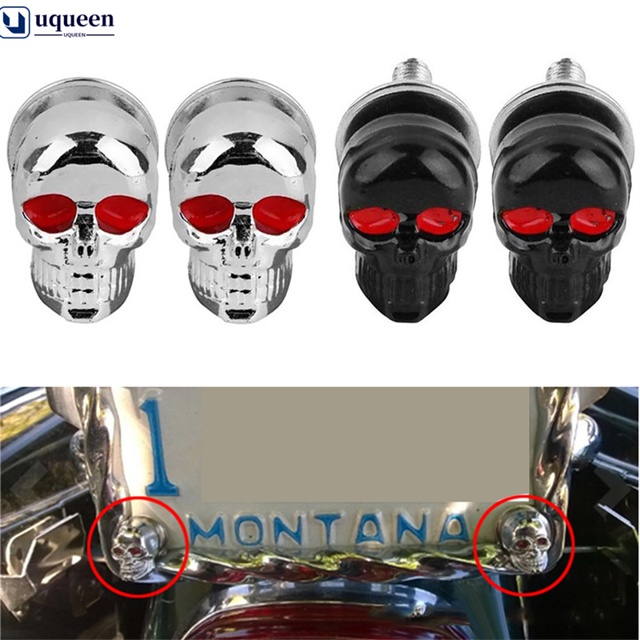 UQ 2Pcs Skull Placa De Carro Parafusos Da Tampa Do Crânio Motocicleta Auto