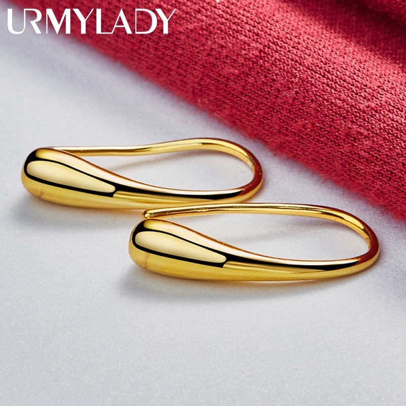URMYLADY Gotas De Água/Brincos De Pinos De Ouro 24K Para Mulheres Moda De Noivado De Casamento Jóias De Encanto