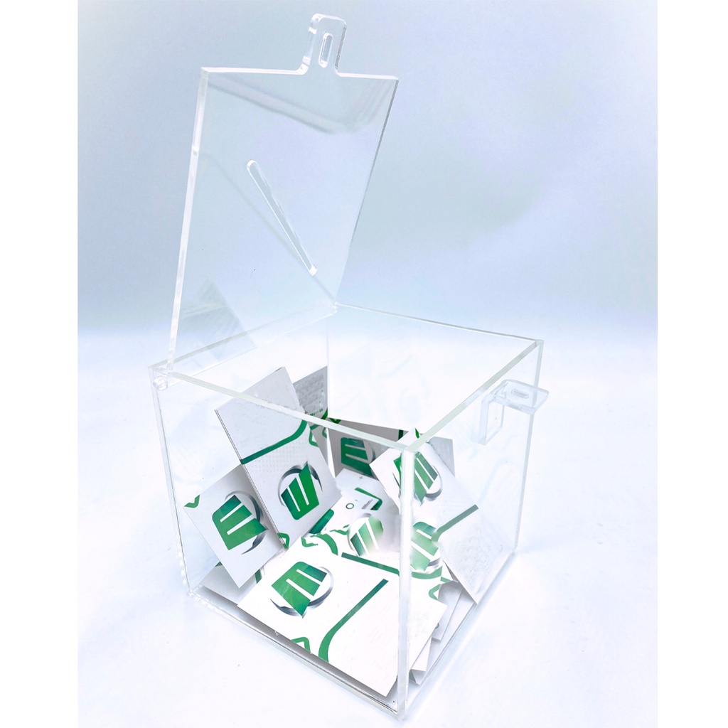 Urna Acrílica Transparente 15x15cm Cadeado para Sorteios Cupons Sugestões Eventos Lojas Escritórios