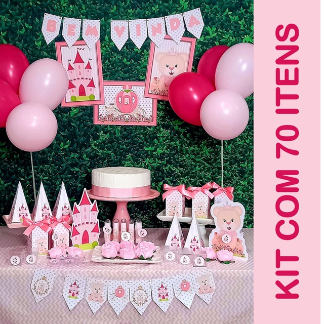Ursinha Realeza Princesa Cha bebê Só um bolinho 70 itens