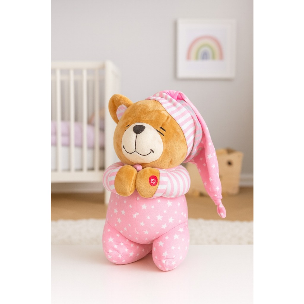 Amiguinhos Musicais – Ursinho que Reza e Ilumina (Modelos Azul ZP01274 e Rosa ZP01275) Descrição: Os Amiguinhos Musicais são ursinhos de pelúcia perfeitos para acompanhar os pequenos na hora de dormir. Vestidos com pijaminha super fofos, eles oferecem conforto, carinho e um toque especial de espiritualidade. Ao pressionar a mão do ursinho, ele reza o Pai Nosso, acende luzinhas suaves nas bochechas e reproduz um fundo musical tranquilo — ideal para acalmar e embalar o soninho da criança. Disponível em dois modelos: Azul – Código ZP01274 Rosa – Código ZP01275 (modelo para meninas, com as mesmas funções do azul) Com luzes e som, esses ursinhos são companheiros perfeitos para criar uma rotina noturna acolhedora, segura e cheia de ternura.