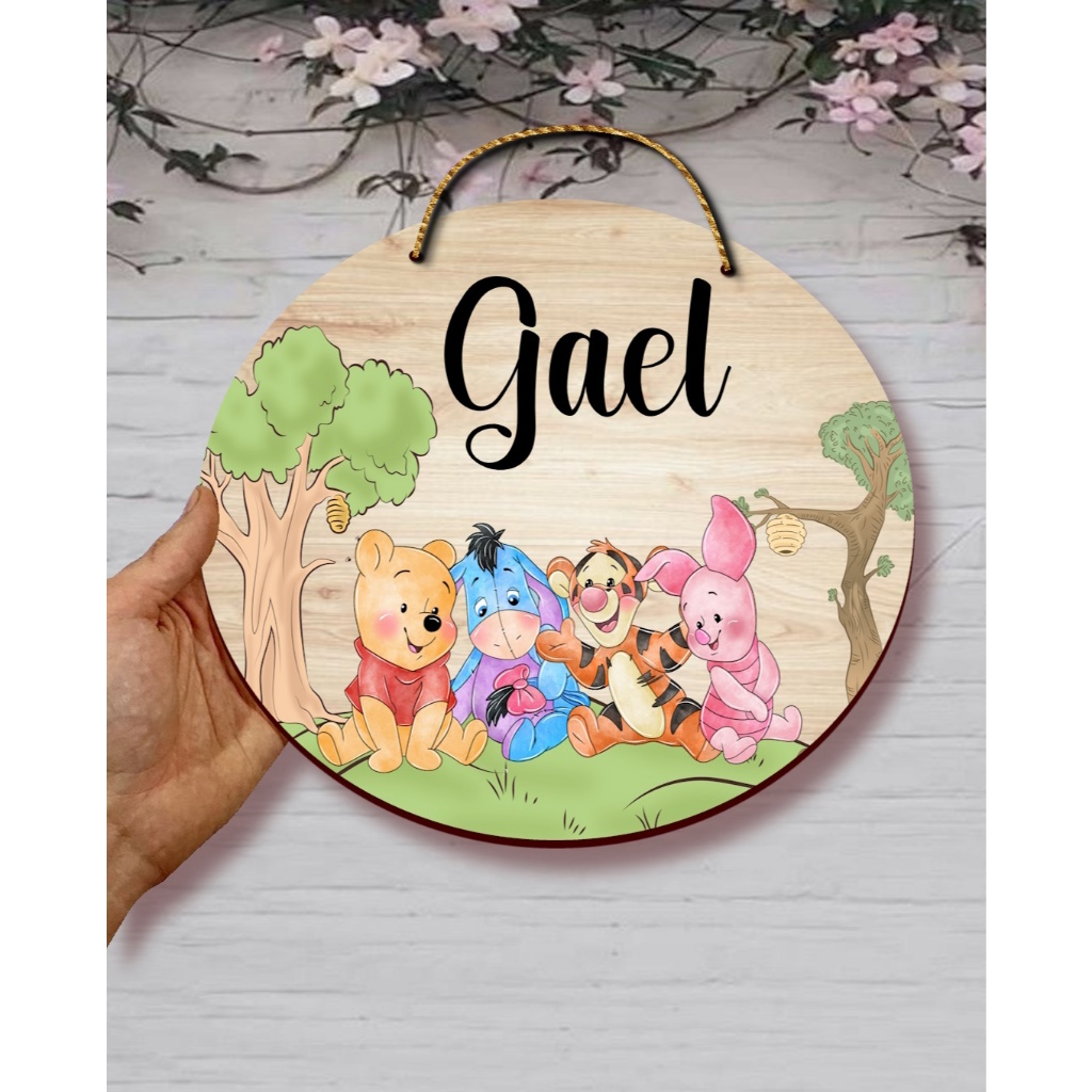 Ursinho pooh , Enfeite Porta Maternidade Nome Personalizado Flâmula Redonda