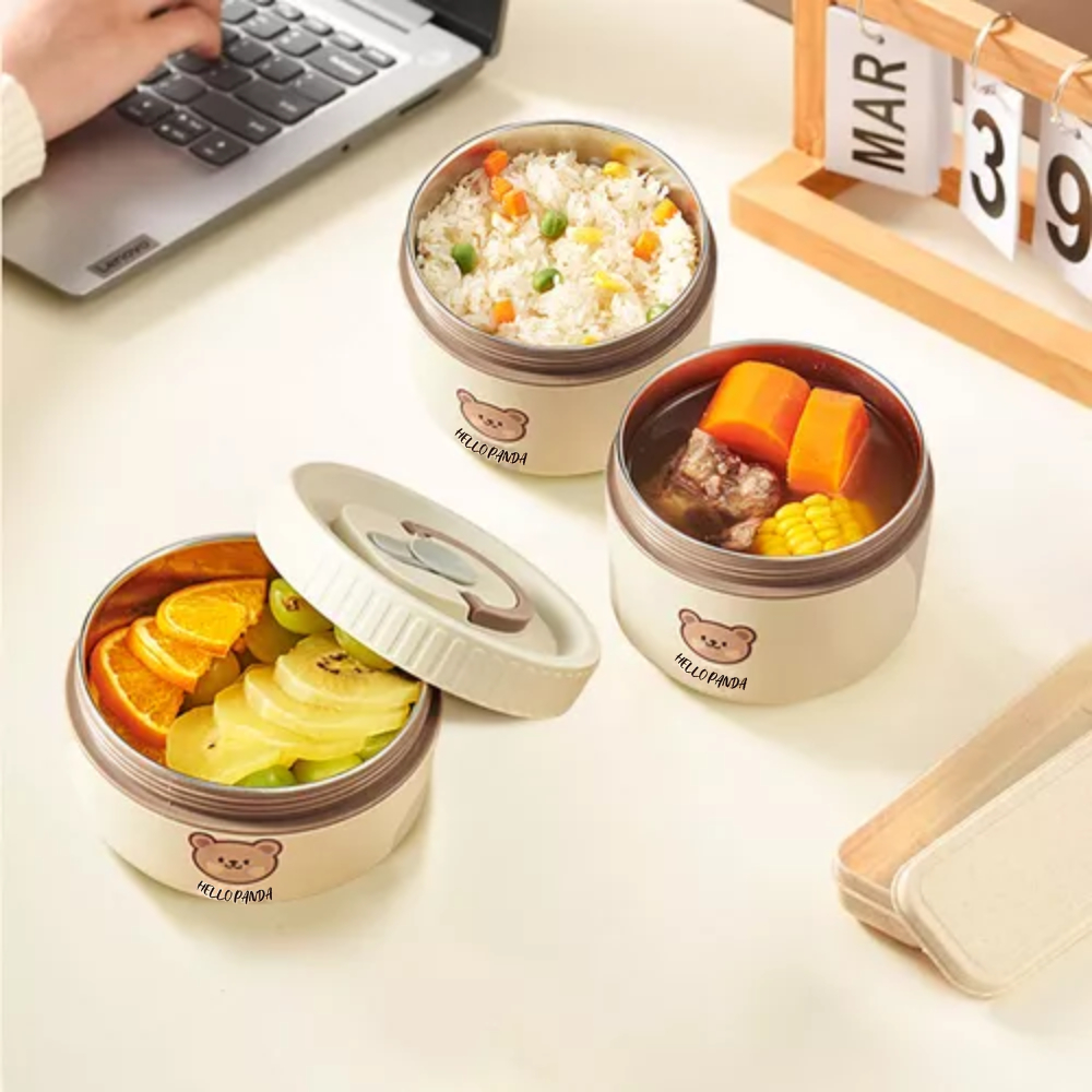Urso 400ml+600ml Infantil Marmita Lancheira Térmica Pote Com Bolsa de Aço Inoxidável TINNY YOU