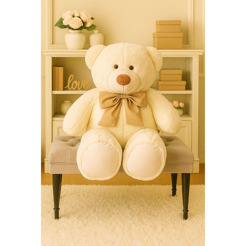 Urso De Pelúcia Teddy Bear Grande Com Laço 50 cm Antialérgico - Baunilha