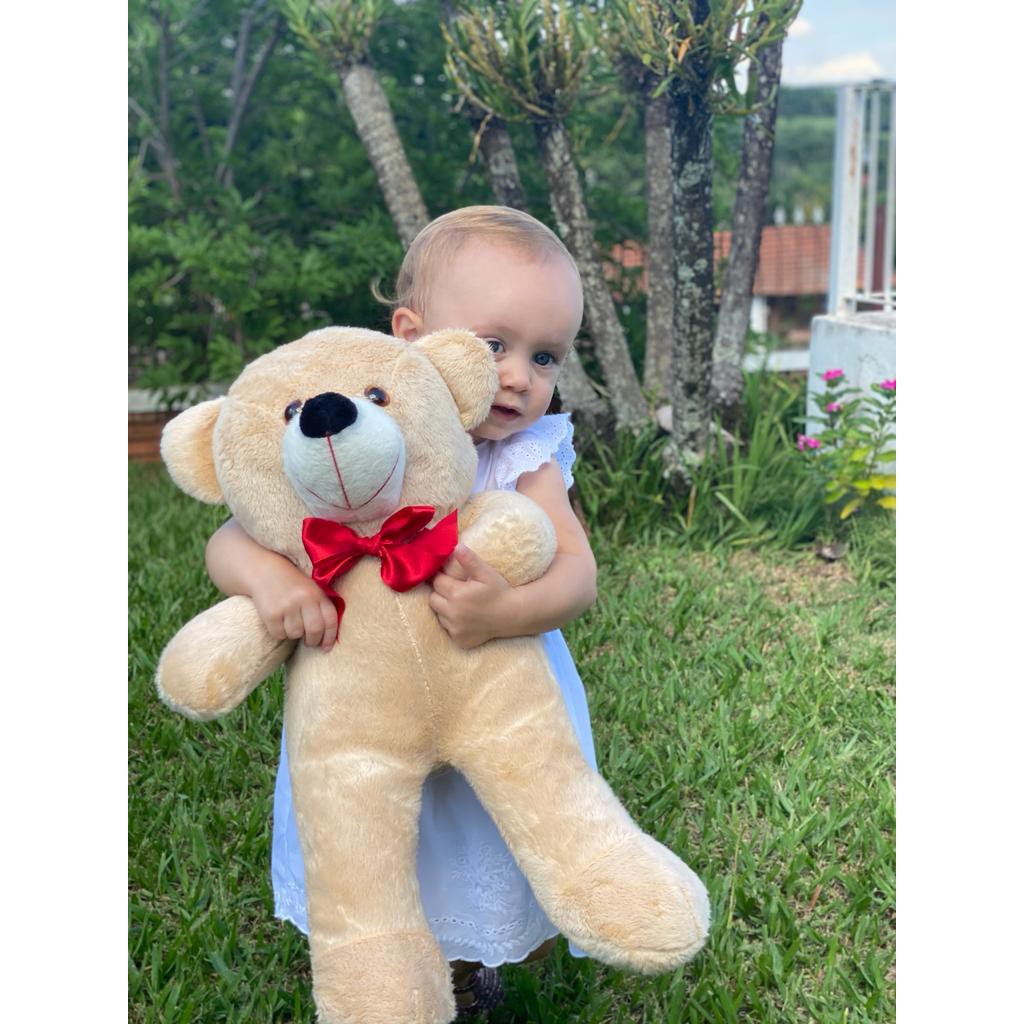 Urso De Pelúcia Teddy Fofinho Grande Com Laço 50cm - Doce De Leite