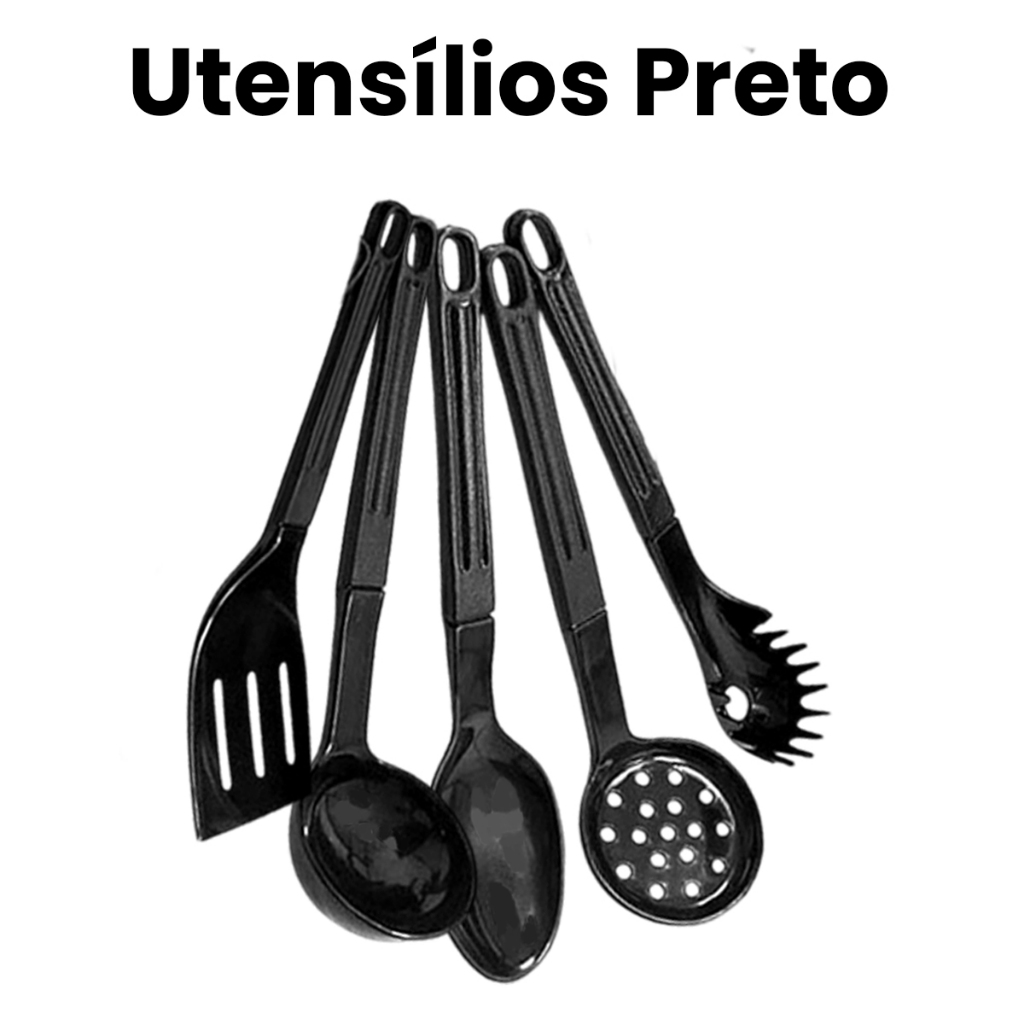 Utensílios de cozinha 5 Peças De Talheres Em Nylon Para Servir Preto