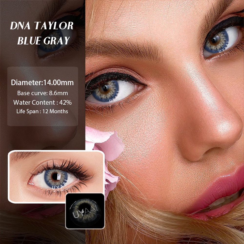 UYAAI Lentes De Contato De Cor Azul 2pcs/Par Macias Naturais
