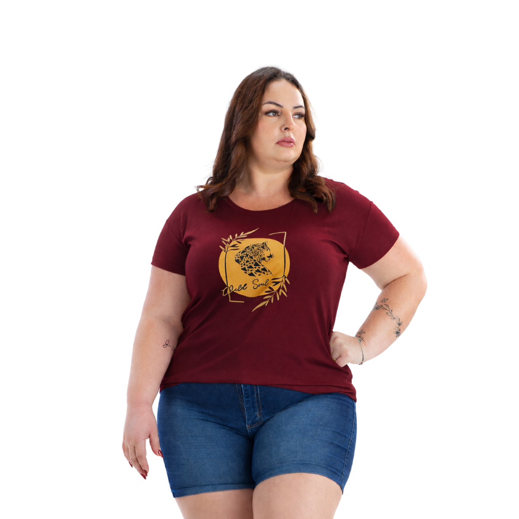 Uzze-Me Blusa Feminina Plus Size T-Shirt em Viscolycra com Estampa