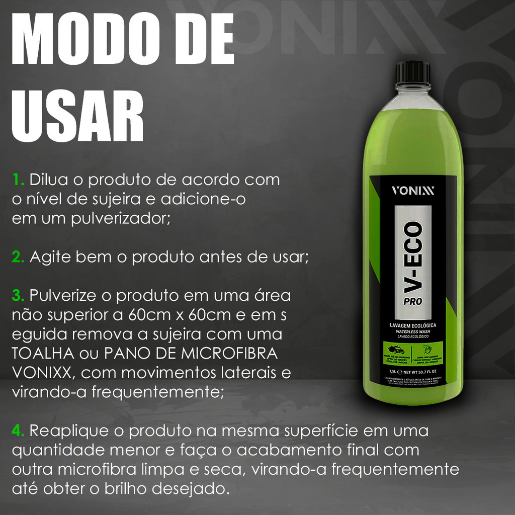 V-ECO PRO 1,5L Vonixx - Lavagem a Seco Concentrado com Cera de Carnaúba, Ecológico e Rende para 250 Carros