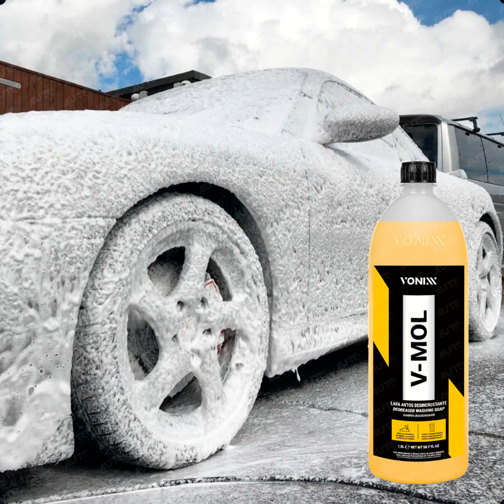 V-mol 1,5lt. Shampoo Desengraxante Lavagem Automotiva Vonixx para sujeiras leves e pesadas