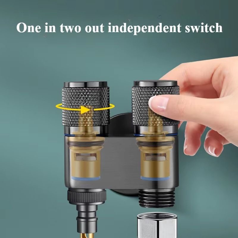 Válvula Controle Dupla 1 Entrada 2 Saída Máquina De Lavar e Torneira Vaso Sanitário Prata e preto