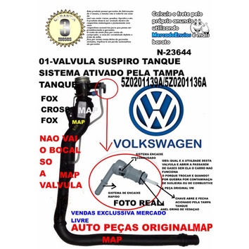 Valvula Exaustão do Gargalo do Tanque Vw Fox 2003 A 2010 Gol G2 G3 Original Volkswagen com NFe 1 - Válvula do Gargalo do Tanque Original 5Z0201139A / 5Z0201136A PRODUTO ORIGINAL VW APLICAÇÃO: Fox Cross Fox 2004, 2005, 2006, 2007, 2008, 2009 até 2010 *INFORMAÇÕES IMPORTANTES* 1 - NOSSOS PRODUTOS NÃO SÃO RECOMENDADOS PARA ADAPTAÇÕES, MAS SIM PARA REPOSIÇÃO. 2 - ANALISE COM CAUTELA A APLICAÇÃO DA PEÇA E, SE NECESSÁRIO, VERIFIQUE COM SEU MECÂNICO DE CONFIANÇA UTILIZANDO AS FOTOS DO ANÚNCIO PARA TER CERTEZA DE QUE ESTA É A PEÇA QUE VOCÊ REALMENTE PRECISA. 3 - SE ASSEGURE DE ESTAR EFETUANDO A COMPRA CORRETA PARA EVITAR EVENTUAIS PROBLEMAS E GASTOS. 4 - PRODUTOS QUE NECESSITAM INSTALAÇÃO A MESMA DEVE SER FEITA POR UM PROFISSIONAL CAPACITADO. 5 - NÃO NOS RESPONSABILIZAMOS POR USO INDEVIDO OU INSTALAÇÃO INCORRETA. 6 - NÃO ACEITAMOS DEVOLUÇÃO DO PRODUTO SEM A EMBALAGEM ORIGINAL. 7 - TODOS PRODUTOS SÃO NOVOS COM 3 MESES DE GARANTIA E NOTA FISCAL. 8 - À POSTAGEM É FEITA NO MESMO DIA PARA PEDIDOS FEITO ATÉ AS 13HS. 9 - TIRE TODAS AS DUVIDAS ANTES DE CLICAR EM COMPRAR. • AGRADECEMOS A SUA PREFERÊNCIA! N-23644