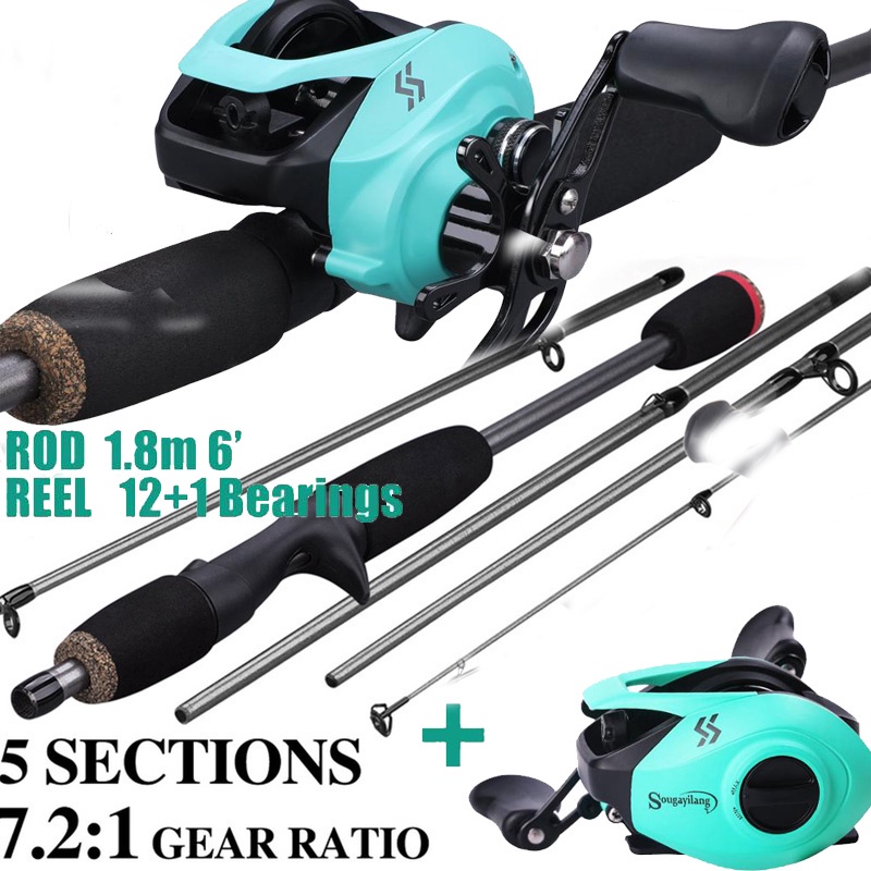 Vara de pesca com carretilha Sougayilang 1.8M 5 Sections 12+1 Ball Bearings 7.2:1 Gear Ratio Max Drag 10KG