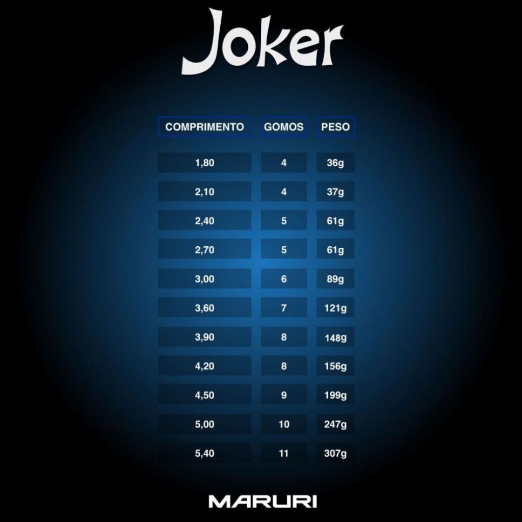 PRODUTO ORIGINAL, NA EMBALAGEM, COM NOTA FISCAL E GARANTIA. ANÚNCIO REFERE-SE A 1 VARA MARURI TELESCÓPICA JOKER BLUE. A Maruri desenvolve para você pescador que preza por qualidade e resistência em equipamentos de pesca, a vara Joker Blue. É uma vara resistente, feita para durar, com acabamento moderno e com ótimo custo x benefício A pesca com vara lisa é uma das mais esportivas e emocionantes, porque requer muito mais habilidade do pescador para trabalhar o peixe e não deixar que este rompa a sua linha. Cada vara possui argola salva vara, tampa emborrachada e capa para armazenamento e transporte. Marca: Maruri PNC Modelo: Joker Blue Comprimento Fechada: 56 cm Fibra de Carbono 40% Comprimento || Peso aprox. || No. de gomos: verificar as fotos deste anúnio Recomendação: Sempre respeite o sentido crescente para abrir a vara e decrescente para fecha. Desta forma, sua vida útil irá estender-se e não haverá problema com remontagem dos gomos. Produto à pronta entrega, postaremos em até 24 horas após a confirmação do pedido. Caso tenha alguma dúvida, por favor contate-nos. Muito obrigado.