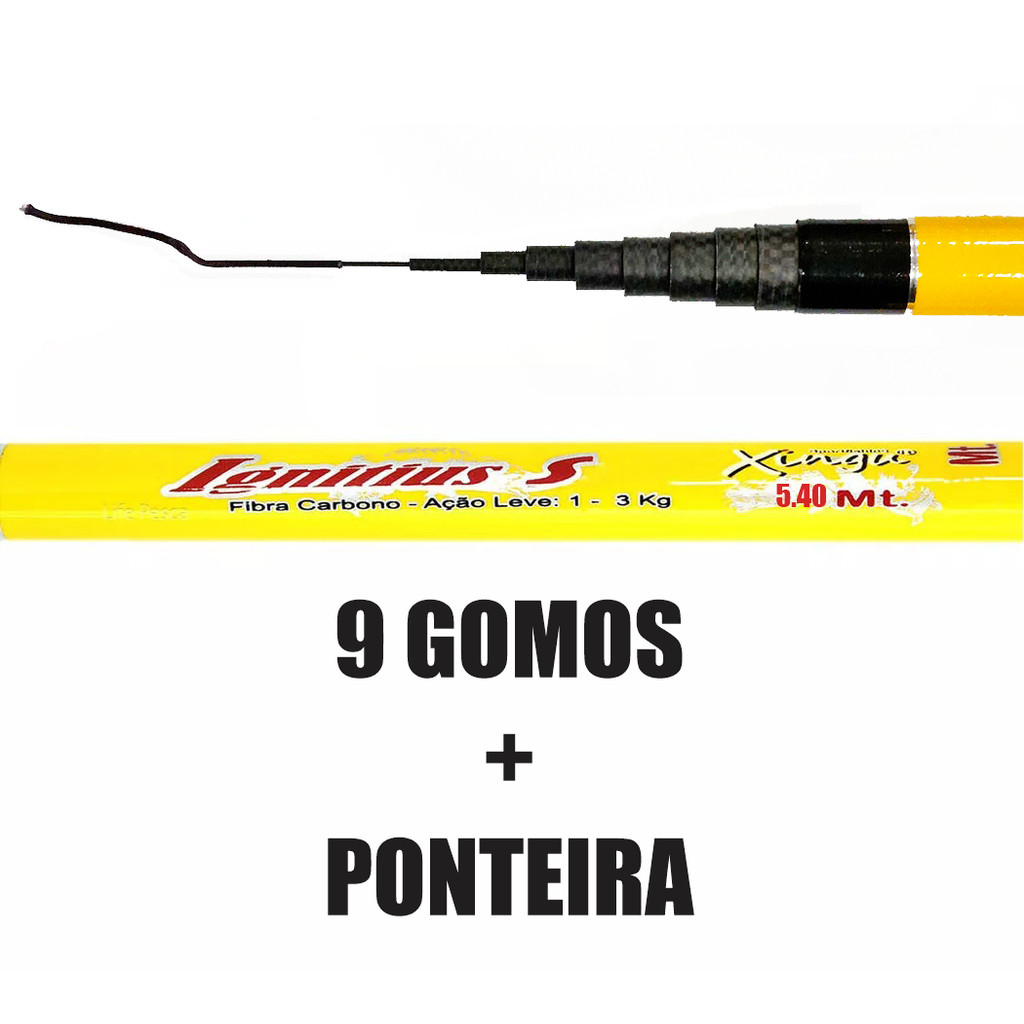 Vara Telescópica Xingu Ignitius - Gomo Curto Xingu, é uma excelente marca, vara super leve e resistente, com ela sua pescaria vai ficar muito mais prática e confortável. Belíssimo acabamento, produzida em fibra de carbono. Acompanha capa protetora para transporte e proteção. Ideal para pescaria de peixes como Lambari, Saicanga, Cara, Tilapia e outros peixes de pequeno porte, é extremamente leve. ESPECIFICAÇÕES: Marca: Xingu Modelo: Ignitius Carbon Tamanho total: 5,40m Tamanho fechada: 75cm Tamanho do cabo: 17cm Gomos: 9 + 1 ponteira Material: Fibra de carbono 100% Ação: Lenta Peso: 192 gramas Acompanha: Capa Protetora Peso suportado: de 1 á 3 kg Cores disponíveis: Amarelo e Marron (será enviado conforme disponibilidade de estoque)