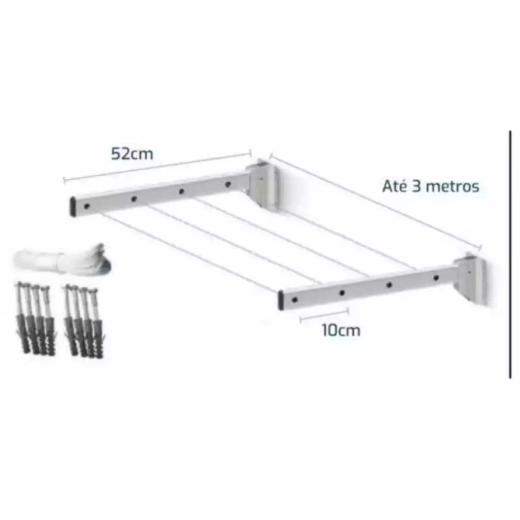 Varal alumínio reforçado retrátil de parede para roupas apartamento sacada. Que suporta até 90kg