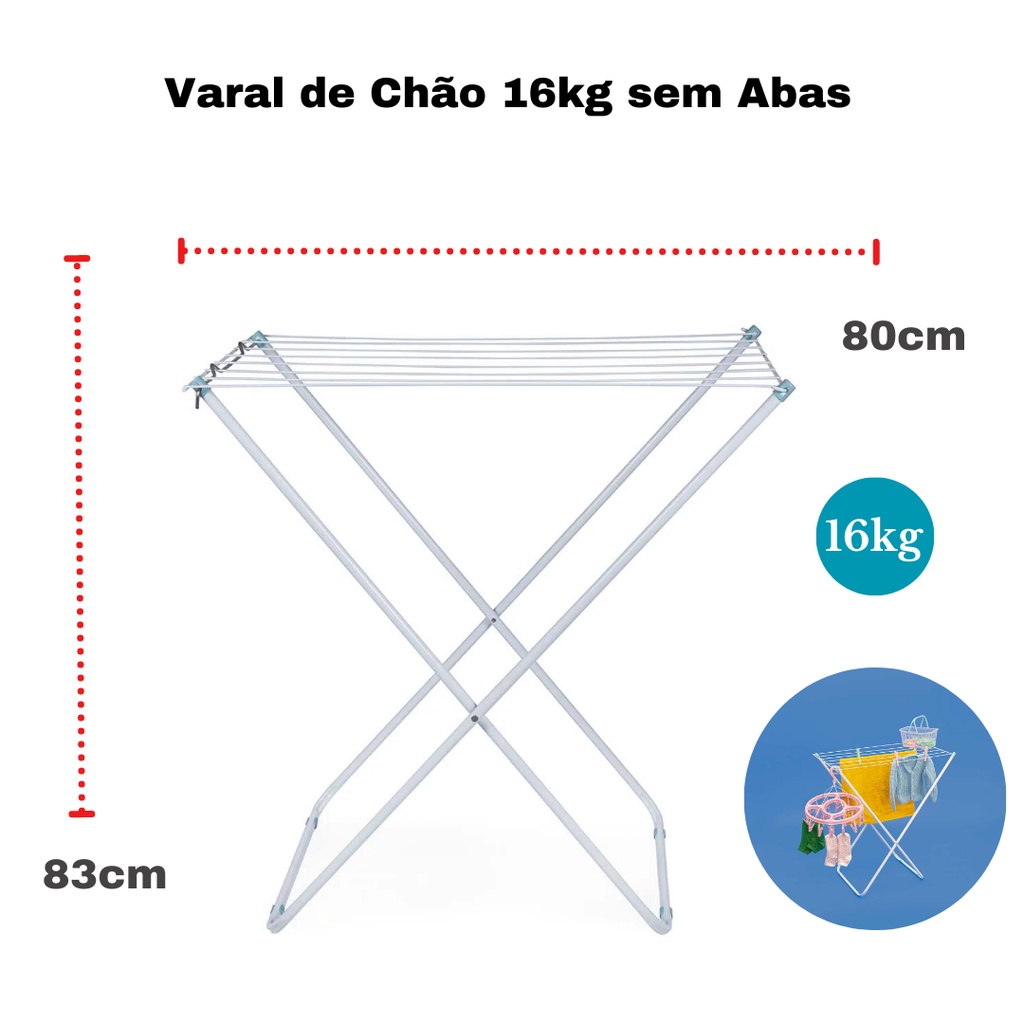 Varal De Chão Aço Secar Roupas Lavanderia Apartamento 80cm Dobrável Retrátil 16kg