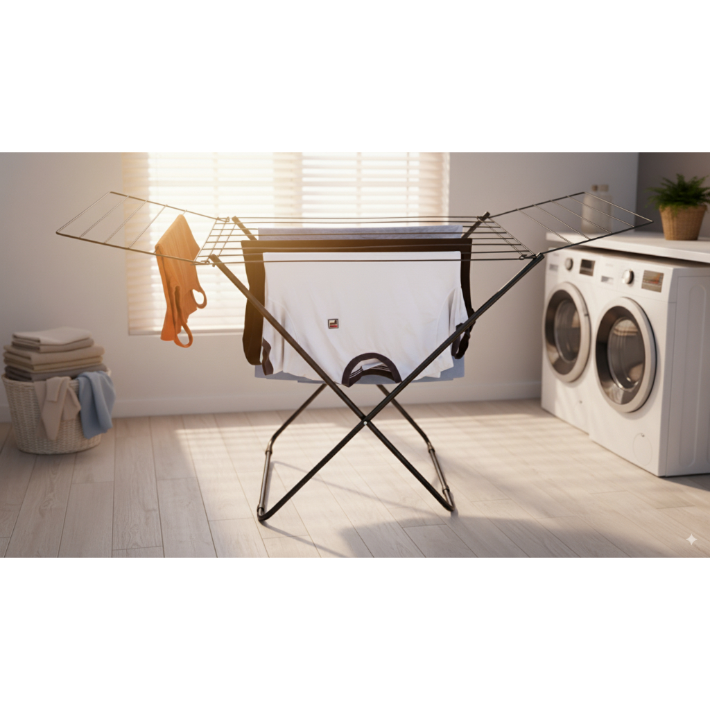 Varal De Chão Com Abas Dobravel Aço Pratico E Econômico 11kg Cor Preto