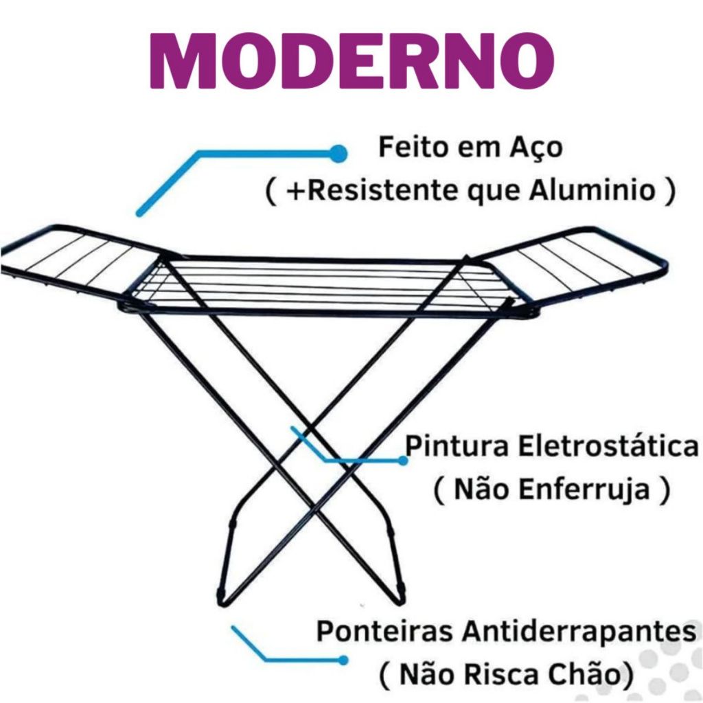 Varal De Chão Com Abas Reforçado Dobrável Aço Secalux 12kg