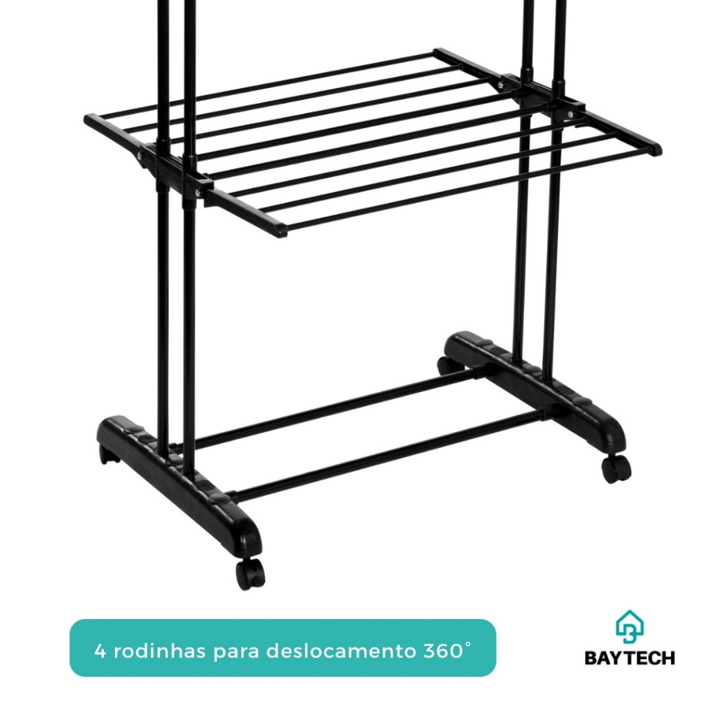 Varal de Chão Dobrável 3 Andares com Rodinhas Varal Vertical para Apartamento Resistente