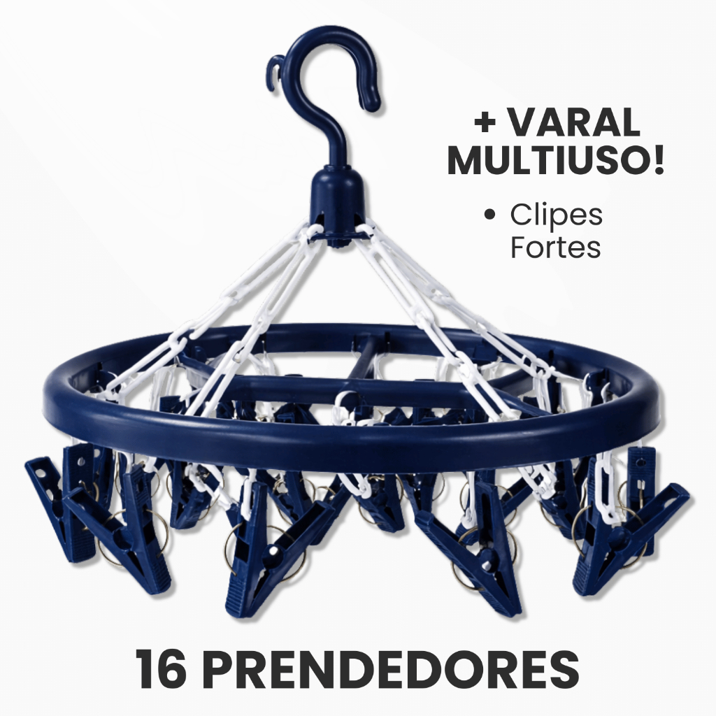 Varal de Chão Dobrável Portátil + Varal Íntimo 16 Prendedores | Kit Lavanderia 24 Prendedores