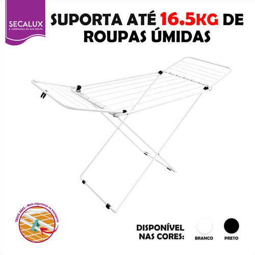| Varal De Chão Dobrável Secalux Ravenna Branco Grande Em Aço Até 19kg este produto | R$ 99,90 | — | 5.0/5 | 14 |