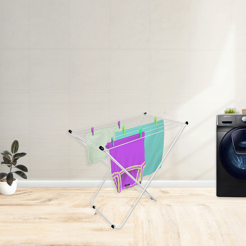 Varal de Chão Slim Aço Branco Secalux - Dobrável, Compacto, Ideal para Varandas Casas e Apartamentos