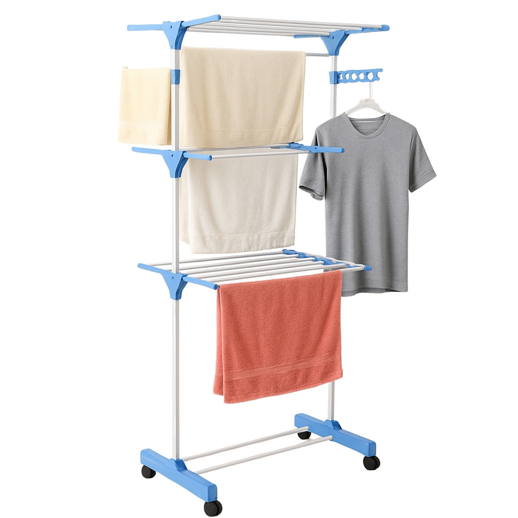 Varal de Chão Vertical com Rodinhas Dobravel Portátil Grande 3 Andares Ideal para Lugares Pequenos