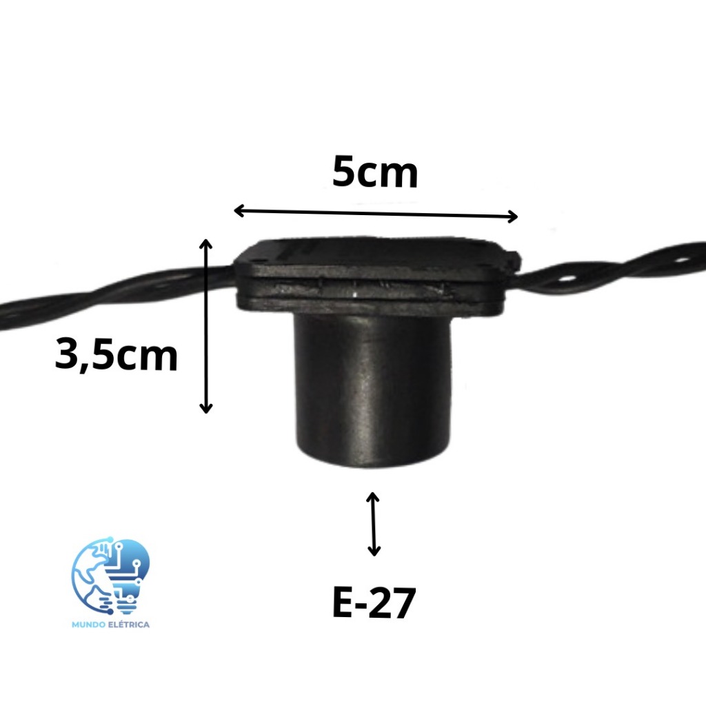 FESTÃO, PARA LÂMPADAS SOQUETES E-27- COMPRIMENTO DE 20 METROS COM 20 LÂMPADAS JÁ INCLUSAS. CORES DE VARAL DISPONIVEIS NO ANÚNCIO!!! MODELO DE LÂMPAPADAS INCANDESCENTES BOLINHA 15W (Ambos modelos transparente ou leitosa tem a luz amarelada, poderá ver a diferença nas imagens do anúncio (1º imagem lâmpadas transparentes, 2º imagem lâmpadas leitosas). Especificações do varal de luzes (cabo). Cabo Paralelo 2x1,5 Capacidade de whats: 1500W NO 220V Capacidade de whats: 600W NO 127V Voltagem: 127V/220V ( VARAL BIVOLT) TOTALMENTE ISOLADO, PARA LIGAÇÕES EXTERNAS, ESPAÇAMENTO ENTRE LÂMPADAS DE 1 MT Ideal para decoração e iluminação de eventos, tais como casamentos, aniversarios, areas externa e internas, trilhas etc...