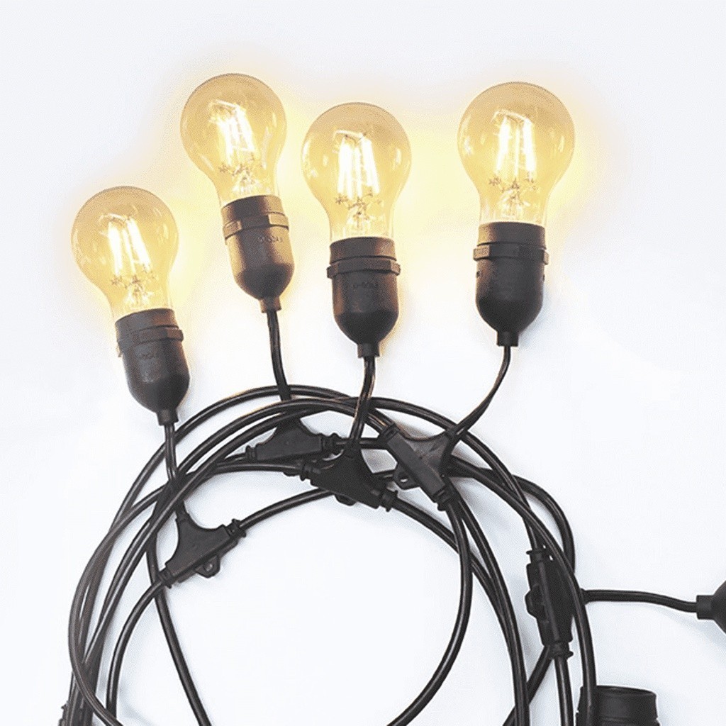Varal de Luzes Cordão de Iluminação cordinno 10 Soquetes Preto 10m - 110/220V