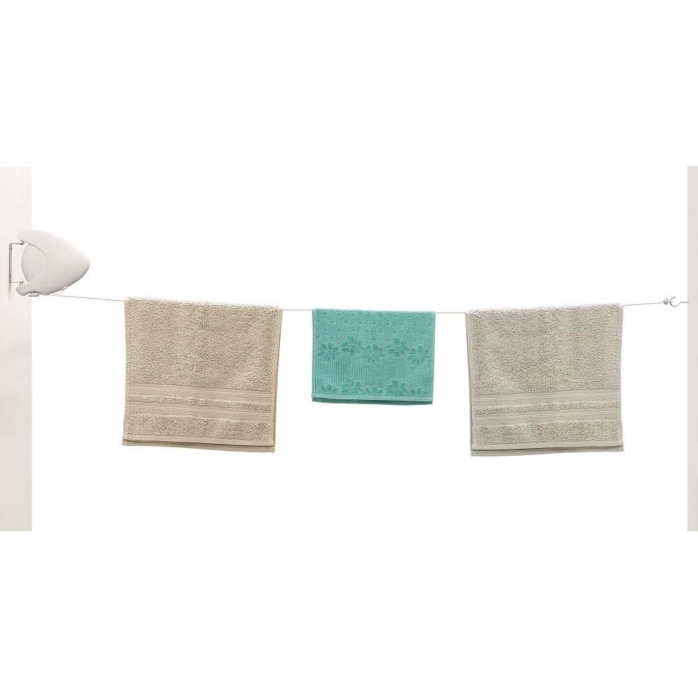 O Varal de Parede Retrátil Branco 15m Log Ordene é pequeno e ideal para quem não tem muito espaço na lavanderia, pois sua corda pode ser guardada dentro do aparelho quando não está sendo utilizado. Suporta até 10 kg.