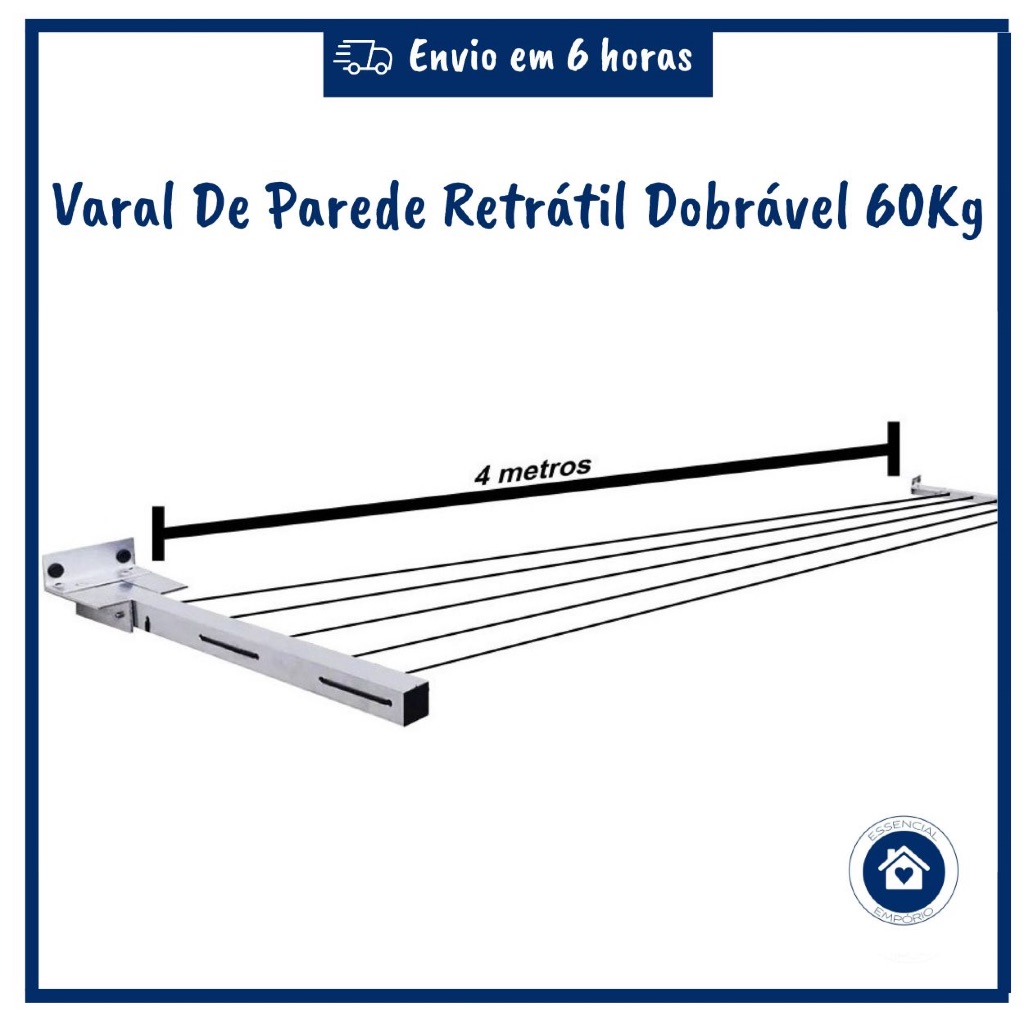 Varal De Parede Retrátil Em Aço Dobrável, Articulado, Cabo De Aço Encapado 60 Kg ENVIO IMEDIATO