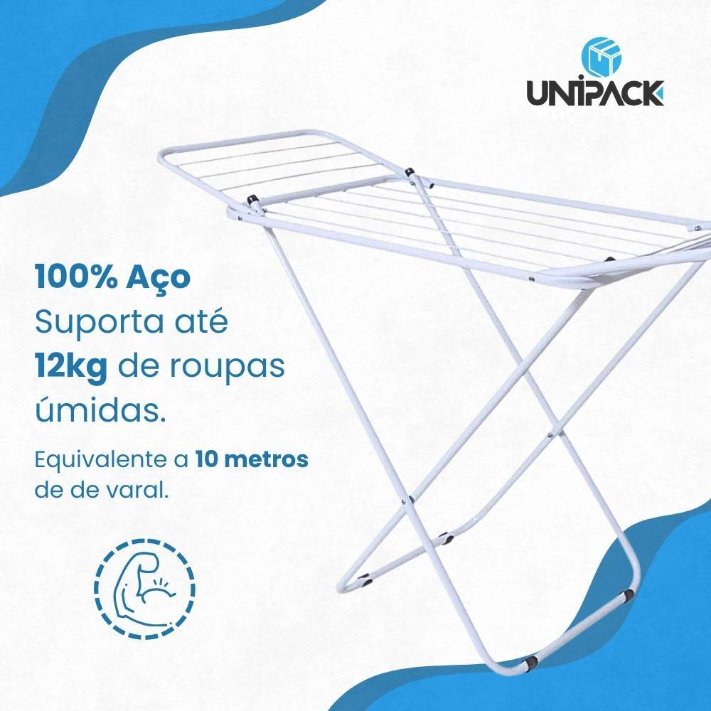 Varal Dobrável de Chão com Abas | Super Leve, Reforçado e Não Enferruja | Pintura Eletrostática Ideal para Apartamento