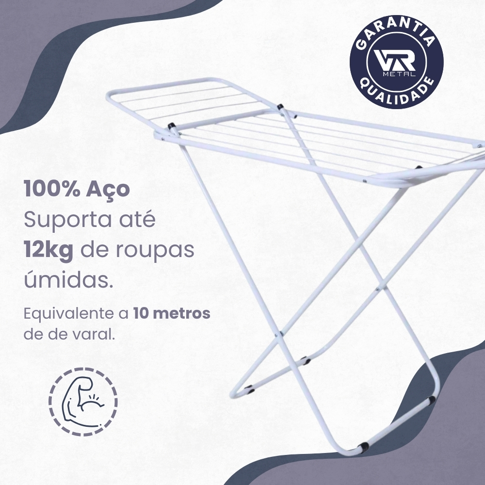 Varal Dobrável de Chão com Abas | Super Leve, Reforçado e Não Enferruja | Pintura Eletrostática Ideal para Apartamento