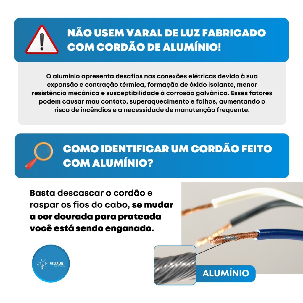 ENVIO IMEDIATO !!!!!!!!! - Comprimento: 5, 10, 15, 20 ou 25 metros - Soquete E27: Com espaço de 1 metro entre as lâmpadas - Cabo Paralelo 2x1,5mm - Voltagem do cabo: bi-volt (lembrando que o que determina a voltagem são as lâmpadas sendo 127v ou 220v) - Capacidade de watts no 220V: 1500w - Capacidade de watts no 127V: 750w - Lâmpadas compatíveis: Eletrônica, Incandescente ou LED. - Alimentação: Plug Macho já incluso (só ligar na tomada) Poderia dar uma lida nas seguintes observações? - ATENÇÃO: O varal é bi-volt, porém as lâmpadas não. *EXEMPLO: Sua rede é 127V (110V), então as lâmpadas, precisam ser 127V. - Fácil de usar viu? Ele vai pronto para uso, é só conectar o plug à tomada! - Favor atentar-se a opção "cor do varal" antes de finalizar a compra! Quais são as lâmpadas inclusas neste anúncio? - Modelo: Incandescente - Voltagem: 127v ou 220v - Potência: 15w - Cor da Luz: Branco Quente (Amarelinha) - Tamanho: Aproximadamente 6,5 centímetros.