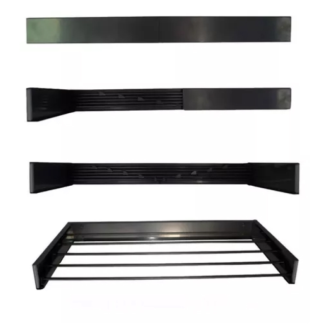 Varal Mágico 100 cm 6 varetas Retrátil Parede Preto