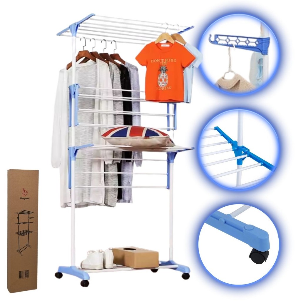 Varal Magnow Reforçado 3 Andares Dobrável Com Rodas p/ 10Kg