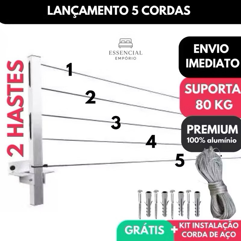 🚀 Lançamento Exclusivo: Varal de Parede Retrátil Essencial 5 Cordas - Praticidade e Resistência que Transformam! ✨ Cansado(a) de varais que enferrujam ou não aguentam o peso da sua roupa? Chegou o Varal de Parede Essencial Empório - a solução definitiva para otimizar seu espaço e secar suas roupas com total segurança e durabilidade. 🔥 Por Que Este Varal é Essencial? • Lançamento Inovador: Design pensado para máxima eficiência, com 5 cordas para mais espaço de secagem. • Construção PREMIUM: Estrutura robusta com 2 HASTES em 100% ALUMÍNIO, garantindo total resistência à corrosão e uma vida útil incomparável. • Capacidade Extrema: Suporta com segurança até 80 KG de roupa, ideal para o dia a dia e para aquelas cargas maiores! • Pronta Entrega: Receba rapidamente! Com ENVIO IMEDIATO, você começa a usar seu varal sem demora.