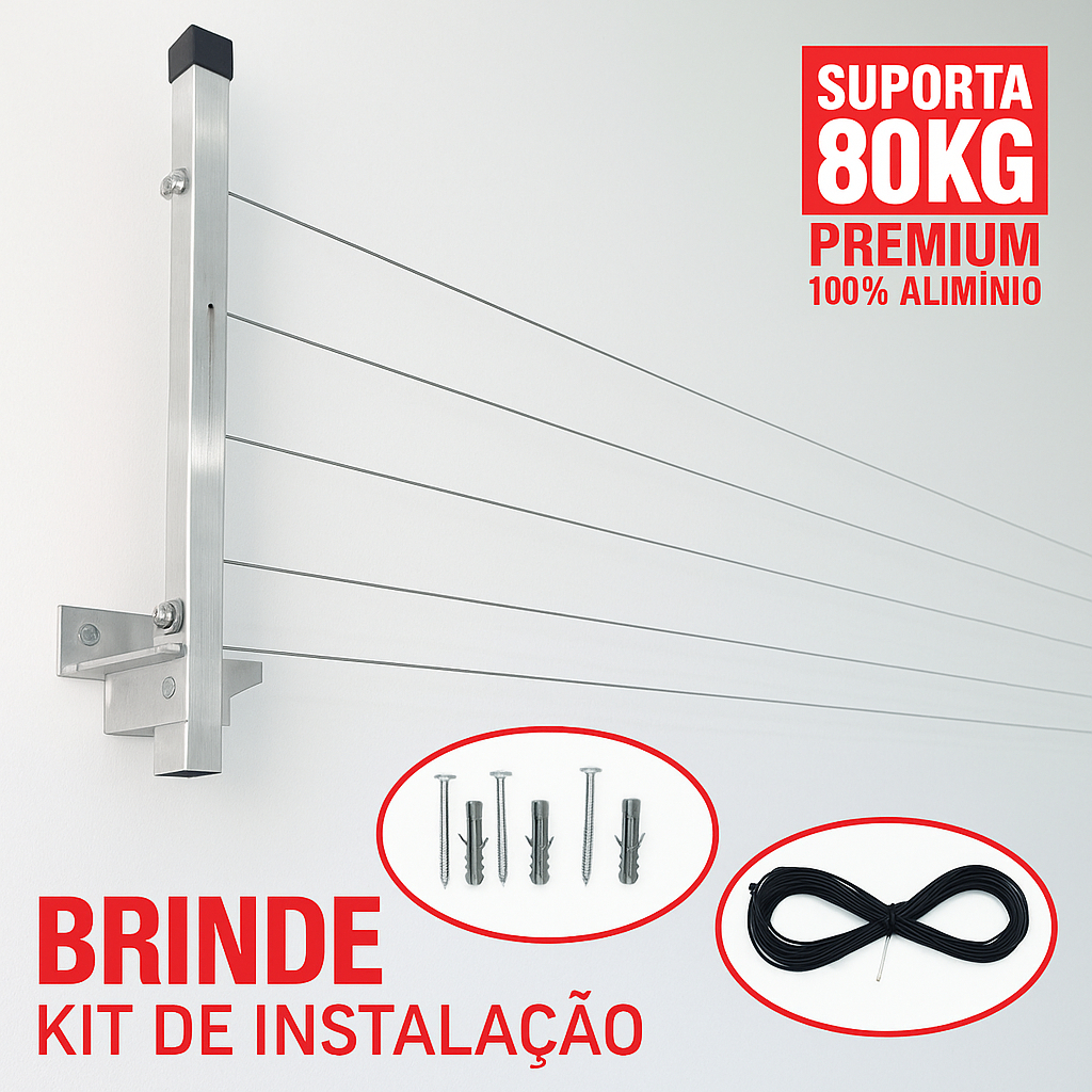 Varal Retrátil de Parede 100% Alumínio – Suporte Reforçado 80kg | Envio Imediato