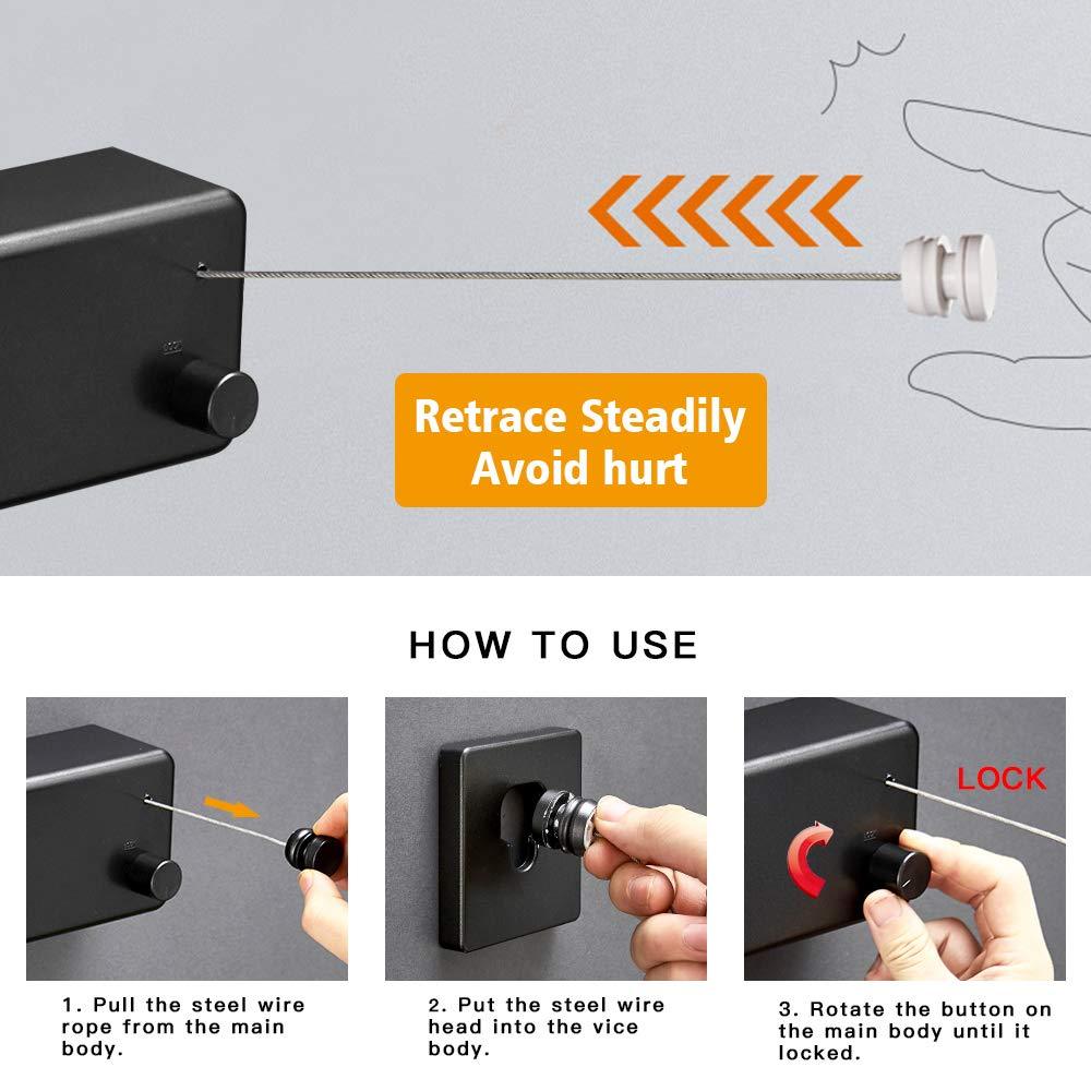 Varal Retrátil Parede Automático 2 Cordas Apartamento Cor Preto/Branco/Dourado 40kg para