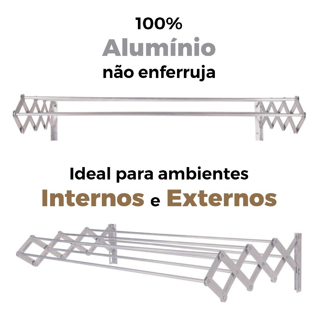 Varal Roupa Parede Sanfonado 50cm Alumínio Retrátil Grande Dobrável Articulado Forte Resistente