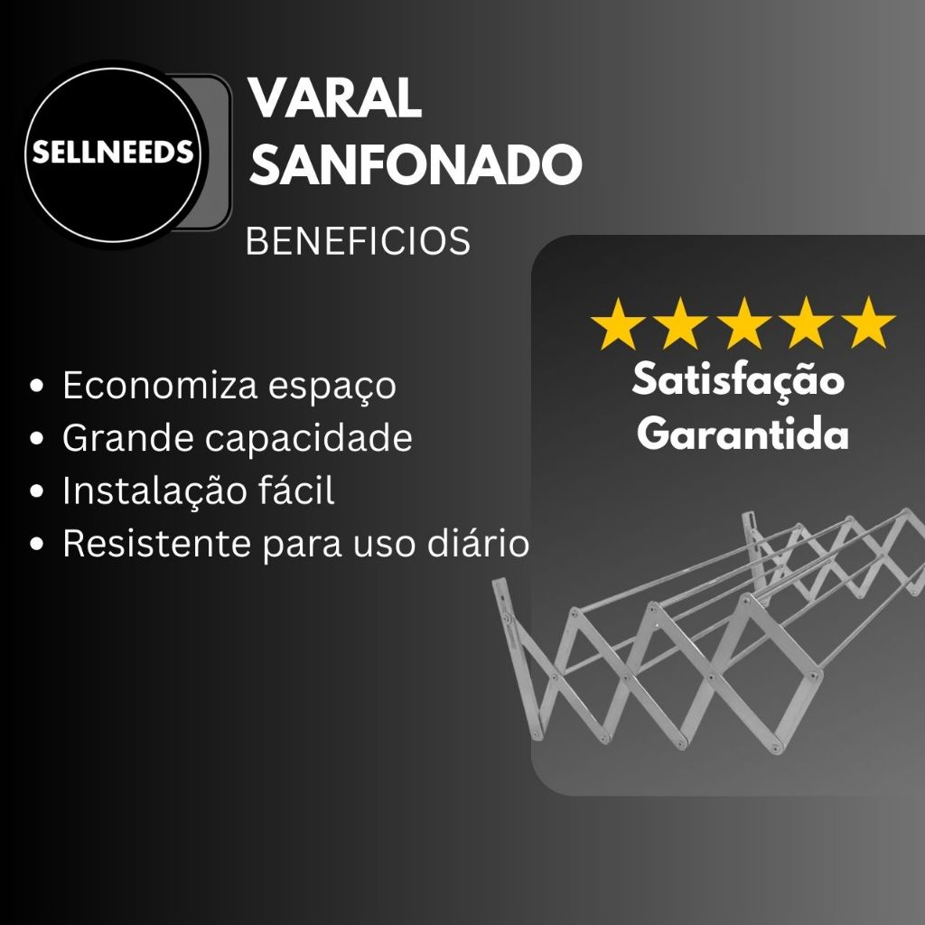 👕 Varal Sanfonado Retrátil de Parede 80 cm Praticidade e economia de espaço para seu dia a dia! Se você precisa de uma solução compacta e eficiente para secar roupas em apartamentos ou lavanderias pequenas, o Varal Sanfonado é a escolha ideal! Com estrutura resistente em aço e acabamento na cor preta, ele é retrátil, fácil de usar e ocupa pouco espaço quando fechado. Fixado na parede, ele acomoda até 3 kg de roupas úmidas, distribuídas de forma uniforme em suas varetas, totalizando 4,2 metros de extensão útil para secagem. ✅ Benefícios: • Estrutura retrátil: fecha quando não está em uso • Ótimo aproveitamento de espaço • Fácil instalação – acompanha kit com buchas e parafusos • Durável, leve e ideal para áreas internas e externas • Suporte para até 3 kg de roupas distribuídas 📐 Especificações Técnicas: • Material: Aço • Acabamento: Branco • Medidas (C x L x A): 80 cm x 42 cm x 16 cm • Capacidade de Secagem: até 4,2 metros lineares • Peso suportado: até 3 kg 📦 Itens Inclusos: • 1 Varal Sanfonado 80 cm • Kit de instalação com 4 buchas nº 6 e 4 parafusos zincados