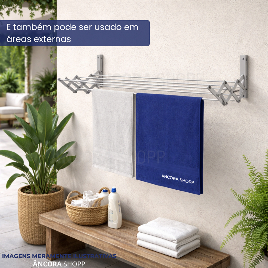 Varal Sanfonado Retrátil de Alumínio de Parede 77cm para Roupas Cueca Calcinha Apartamento até 6kg