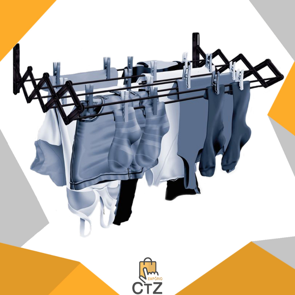 Varal Sanfonado Retrátil Parede 60 cm Aço Preto ou Branco Secalux