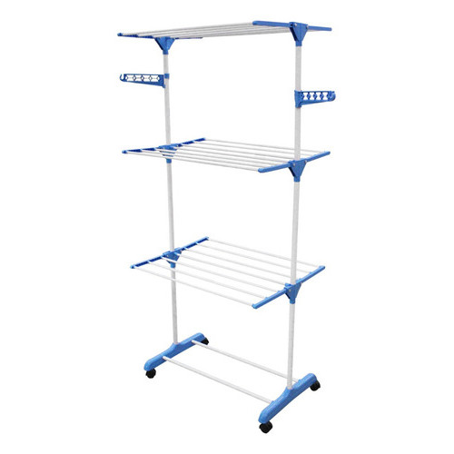 Varal Vertical 3 Andares Inox Retrátil Apartamento Com Rodas Azul