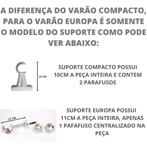OBSERVAÇÃO: O KIT VAI EM PARTES COM EMENDA Benefícios: - Tamanhos exatos - Produto de Aço com revestimento - Sem rebarbas e resistente NFORMAÇÕES TÉCNICAS -Material do suporte e ponteiras: PP (Polipropileno) -Material dos tubos: Aço revestido -Comprimento: 2,50mts -Diâmetro: 28mm ACOMPANHA: -2 tubos de 1,0m e 1 de 0,50cm -3 suportes -2Ponteiras -Buchas para fixação 8mm - Emenda FERRAMENTAS NECESSÁRIAS: - Furadeira. - Metro, Trena ou Régua. - Caneta ou lápis para marcação.